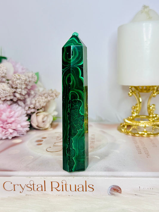 AAA High Grade Natural Malachite Tower From Congo 12cm