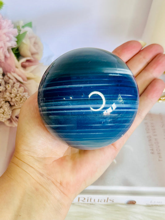 ⚜️ SALE ⚜️ Large 702gram Blue Agate (dyed) Sphere On Stand