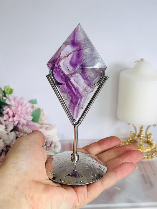 Classy & Fabulous Purple Fluorite Carved Diamond On Silver Stand 15cm