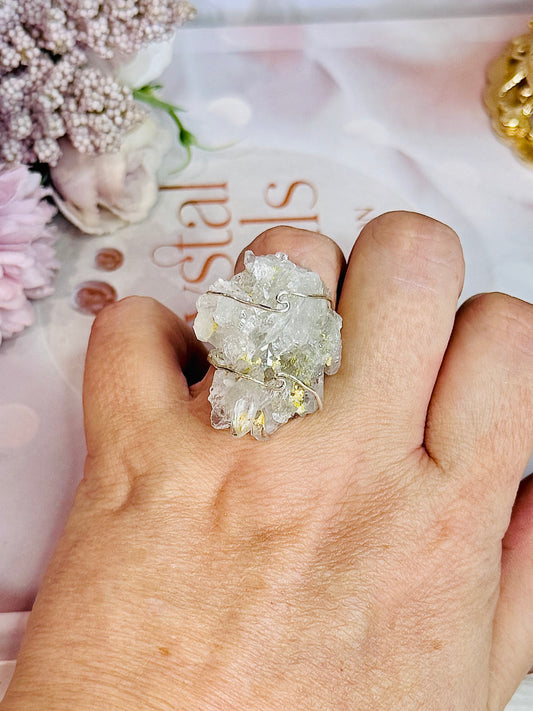 Clear Quartz Cluster Adjustable Ring In Gift Bag From Brazil