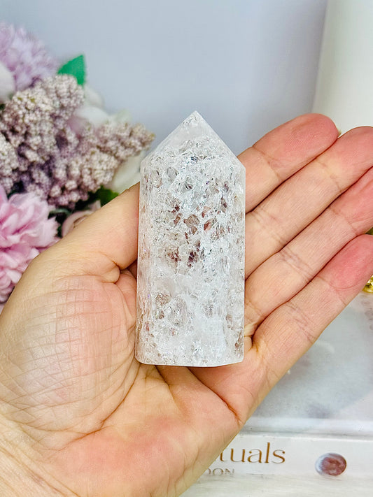 Fire & Ice / Crackle Clear Quartz Tower 8cm