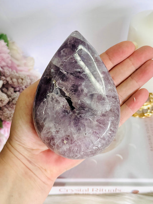 Fabulous Large 618gram Druzy Amethyst Chunky Carved Tear Drop | Flame From Brazil