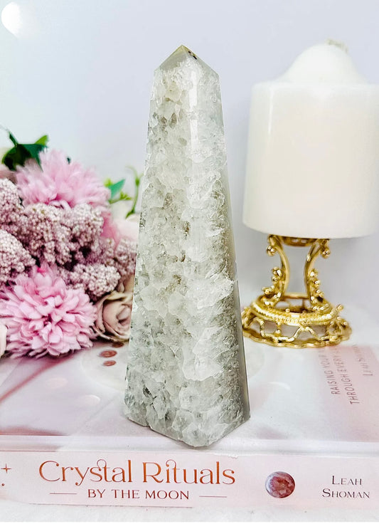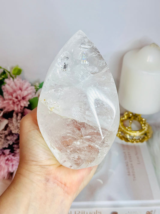 Absolutely Stunning High Grade Large Clear Quartz Carved Flame | Freeform with Rainbows From Brazil 677grams