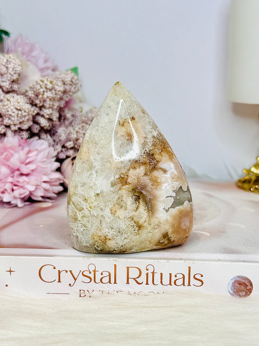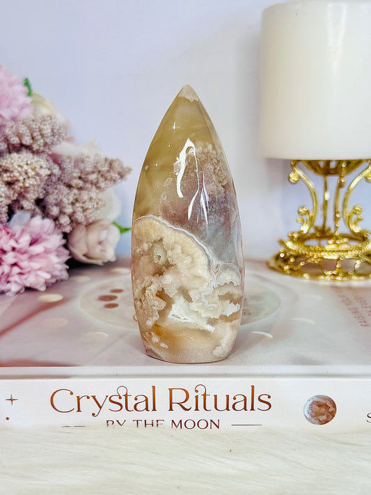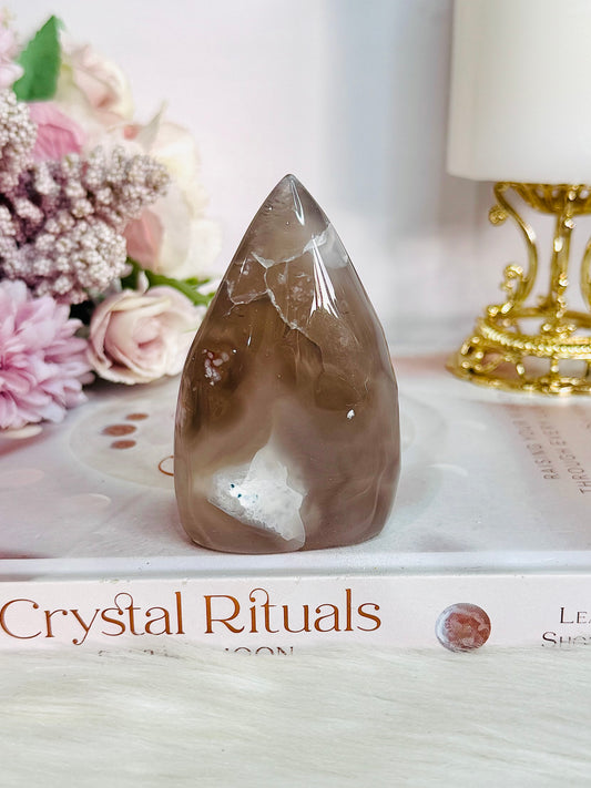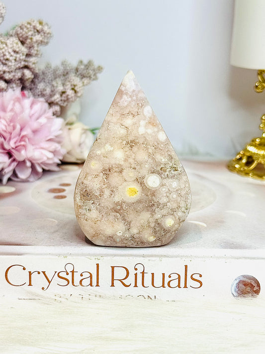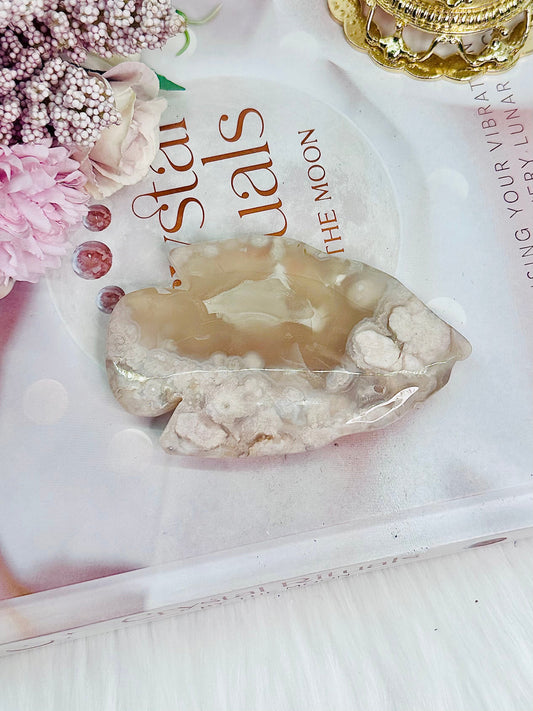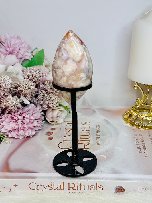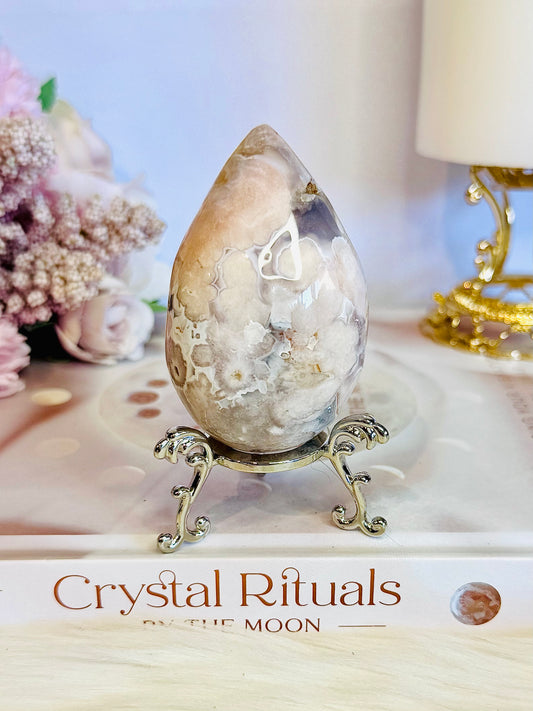 Flower Agate Carved Druzy Egg on Stand From Madagascar