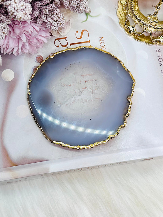 Gold Plated Agate Coaster | Slab From Brazil 10cmVendor:Beachy Blues CrystalsRegular price $25.00 AUDRegular priceUnit price per-