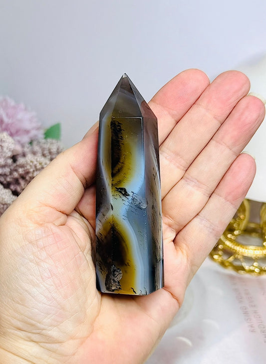 Amazing Smokey Citrine ‘Wing’ Print Tower with Rainbows 359grams