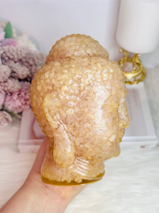 Huge 1.39KG Resin Rose Quartz Filled Buddha Head