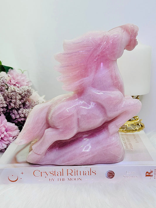 Huge 1.38KG Rose Quartz Perfectly Carved Horse