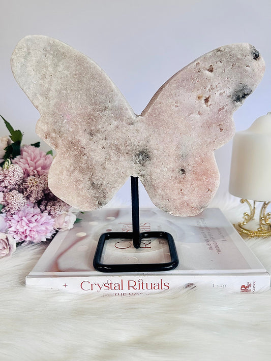 Huge 1.35KG 19.5cm Pink Amethyst Druzy Chunky Butterfly on Stand