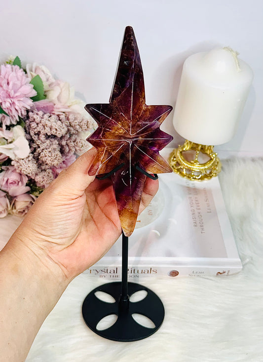 Incredible Large Natural Fluorite Carved Polaris Star On Stand 25.5cm