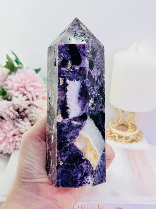 Large 16cm Chunky 865gram Purple Root Fluorite Tower