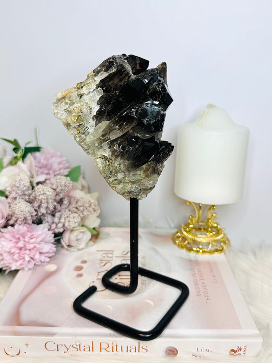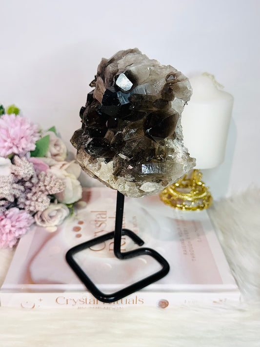 Large 20cm Smokey Quartz Cluster On Stand From Brazil