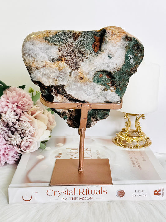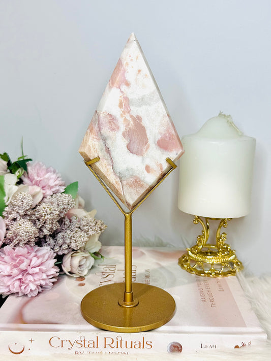 Large 23.5cm 1.5KG Druzy Pink Amethyst Slab On Rose Gold Stand