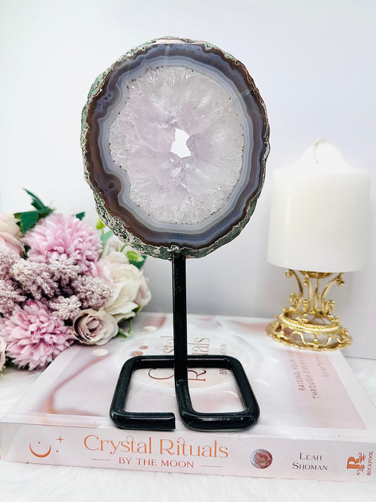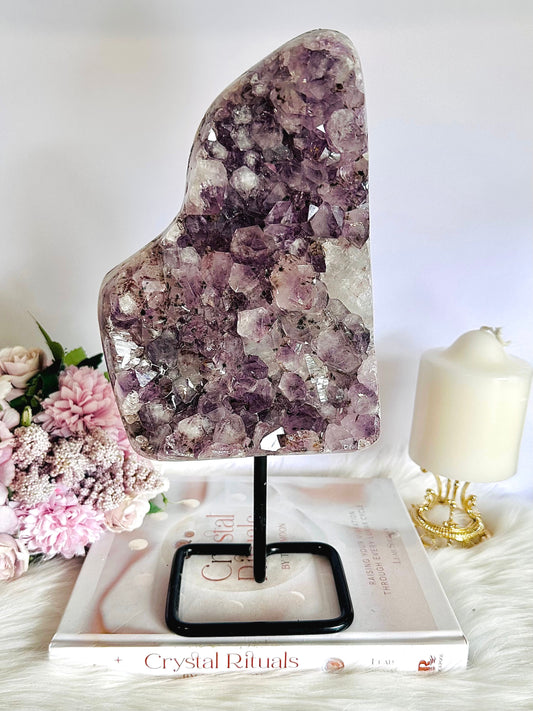 Large 26cm 908gram Pink Amethyst Druzy Slab on Stand