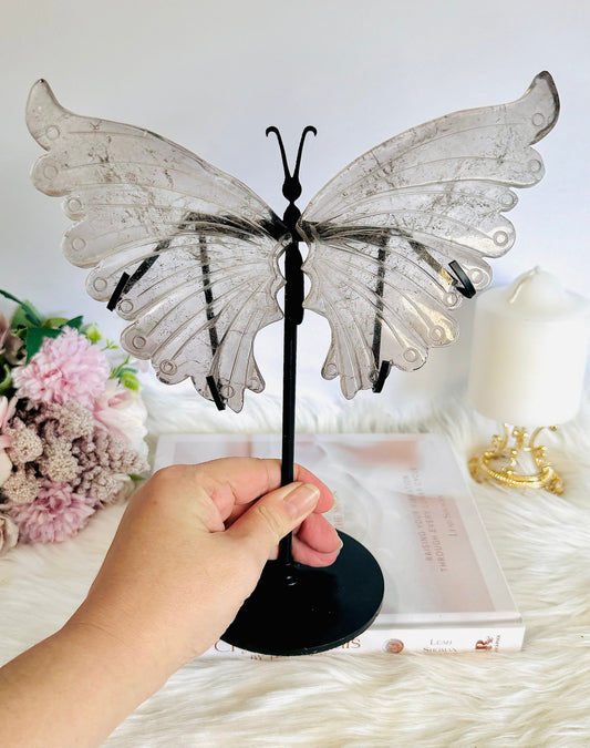 Large 24cm (inc stand) Smokey Quartz Butterfly Wings On Stand from Brazil
