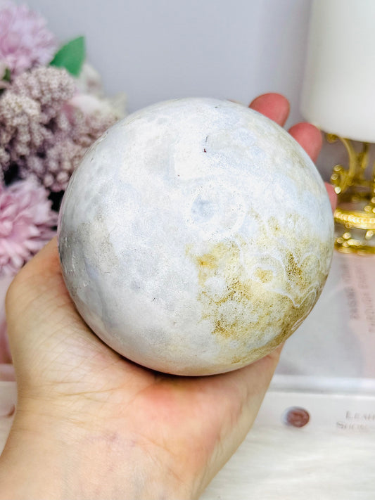 Large 529gram Sugar Druzy Agate Sphere on Stand