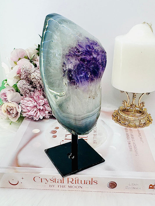 Large 977gram Amethyst Agate Polished Freeform On Stand From Uruguay