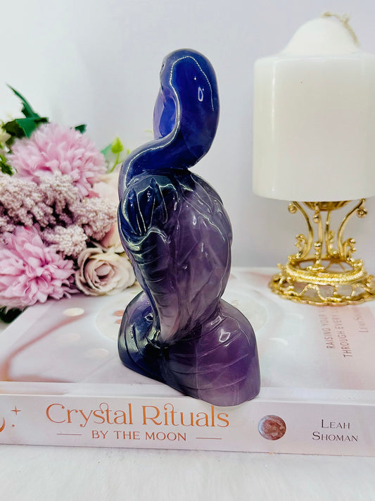Large Purple Fluorite Carved Flamingo 510gram 14cm