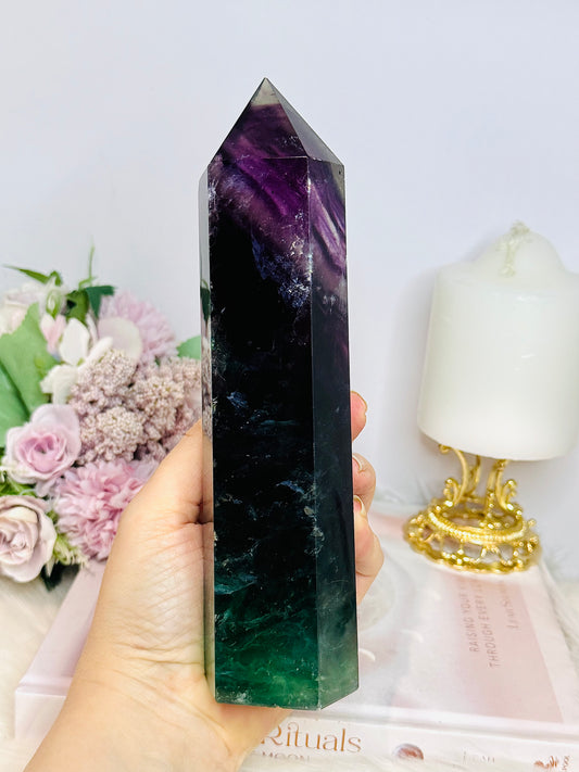 Large Purple & Green Chunky Fluorite Tower with Rainbows 19.5cm 943g