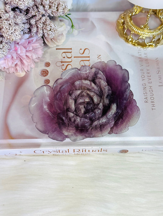 Large Purple Fluorite Carved Flower | Rose 11cm 360gram