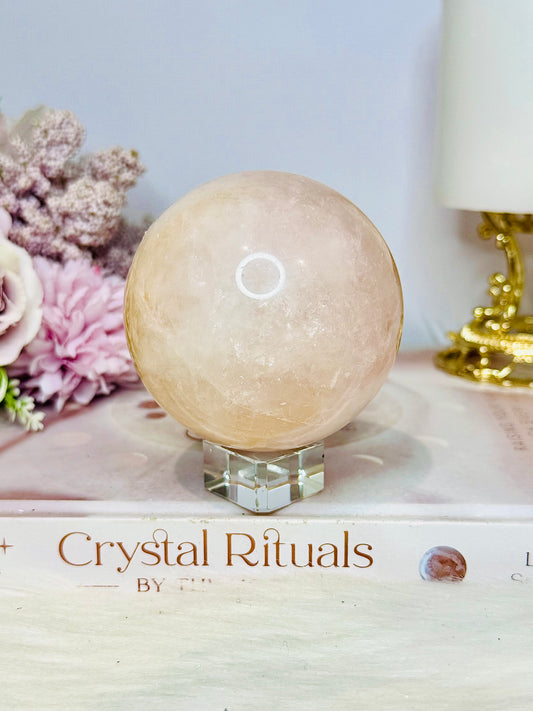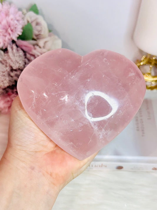 Large Rose Quartz Perfectly Carved Flame On Gold Stand 1.05KG 28cm