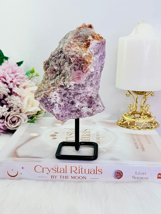 Large Raw Natural Lepidolite Crystal 587grams On Stand From Brazil