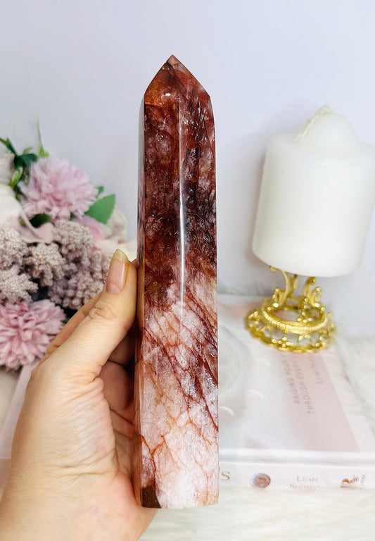 Large Red Fire Quartz Tower 20.5cm with Rainbows