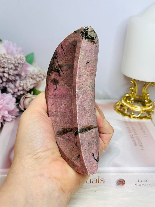 Large Rhodonite Carved Butterfly Wings On Stand 27cm 955g