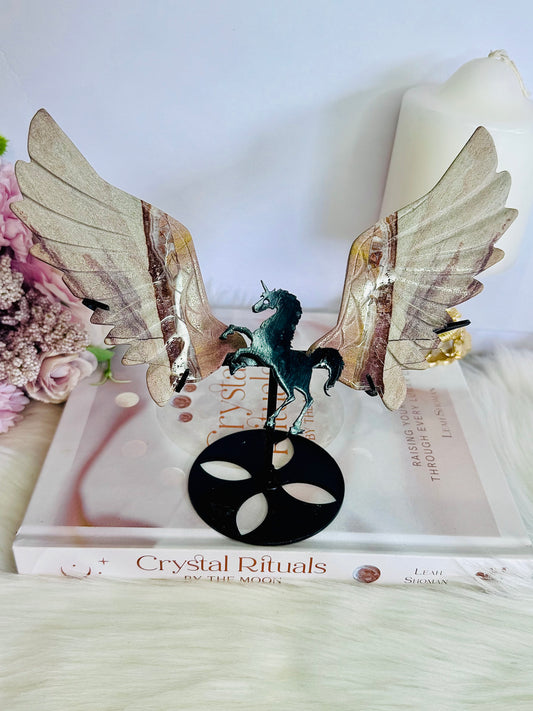 Beautiful Large 16.5cm Tall Jasper Wings On Unicorn Stand