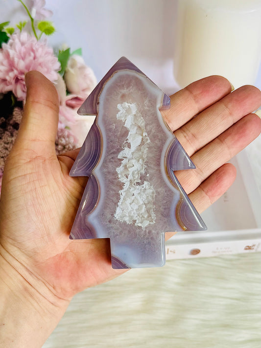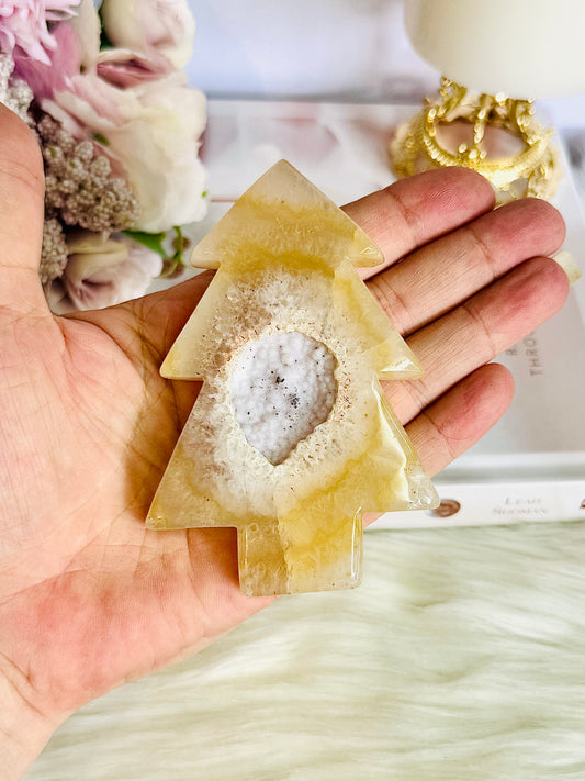 Beautifully Carved 10cm Sugar Druzy Agate Christmas Tree
