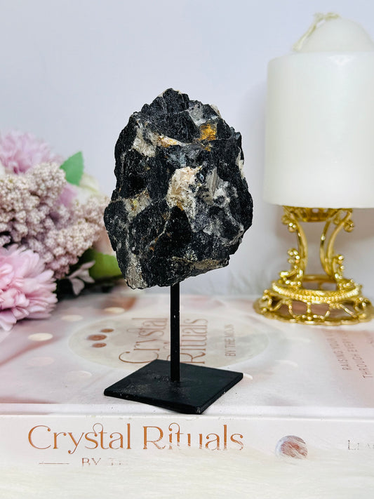 Black Tourmaline In Matrix Natural Specimen on Stand 14cm