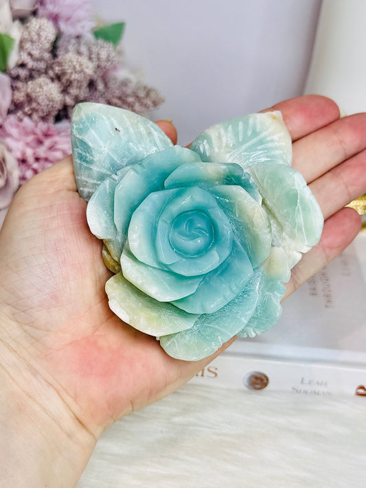 Blue Caribbean Calcite Carved Flower on Stand 266g