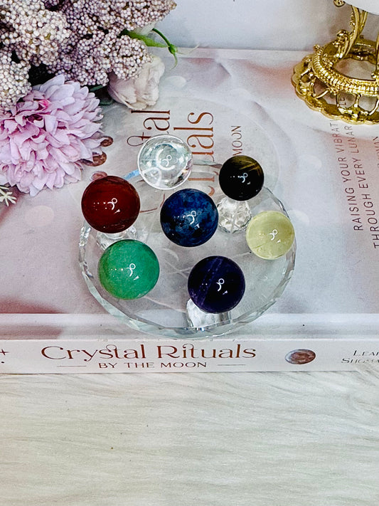 ⚜️ SALE ⚜️ Set of Chakra Spheres on Glass Stand 8cm