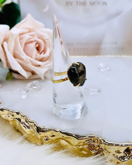 ⚜️ SALE ⚜️Gorgeous High Grade Smokey Quartz Adjustable Gold Plated Ring From Brazil In Gift Bag
