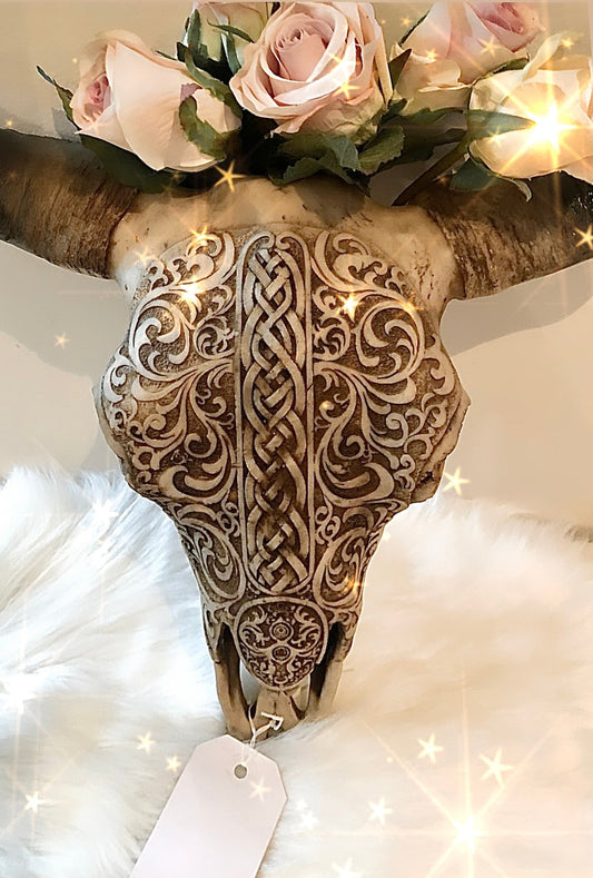 Large Boho Tribal Cow Skull Hanging 45cm (Flowers not included