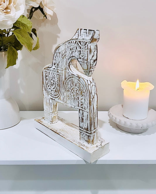 Gorgeous White Wash Wood Carved Trojan Horse 30cm