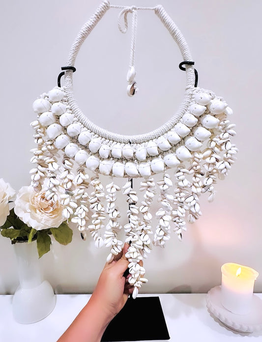Stunning Large Natural Hanging Shells Boho Coastal Necklace On Stand 52cm x 32cm