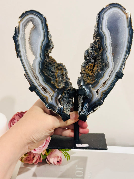 High Grade Amethyst Agate Wings From Brazil 15cm Tall (Inc Stand)