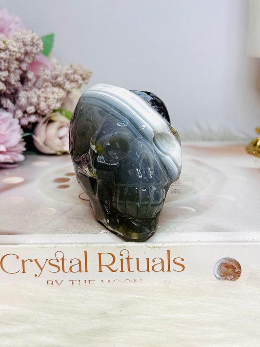 Druzy Rare Combination Agate Carved Skull 8cm 308g