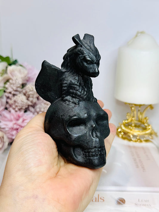 Huge Black Agate Carved Skull 11.5cm 1.24KG