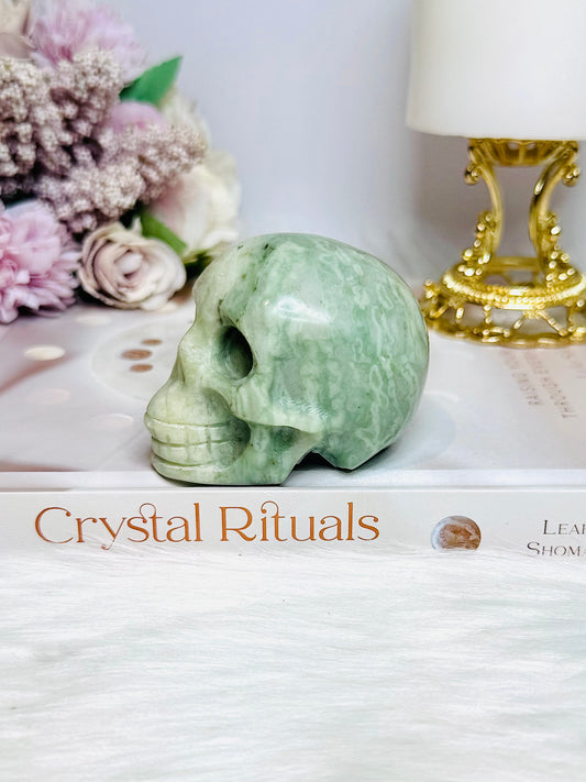 Large Ocean Jasper Carved Skull 8.5cm 428g