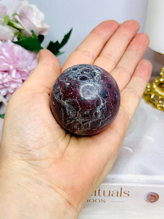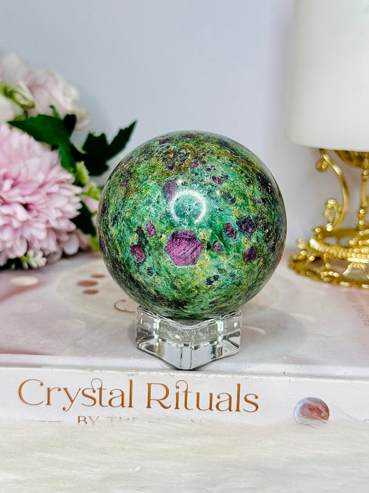 Large Ruby In Fuchsite Sphere UV Reactive On Stand 399g