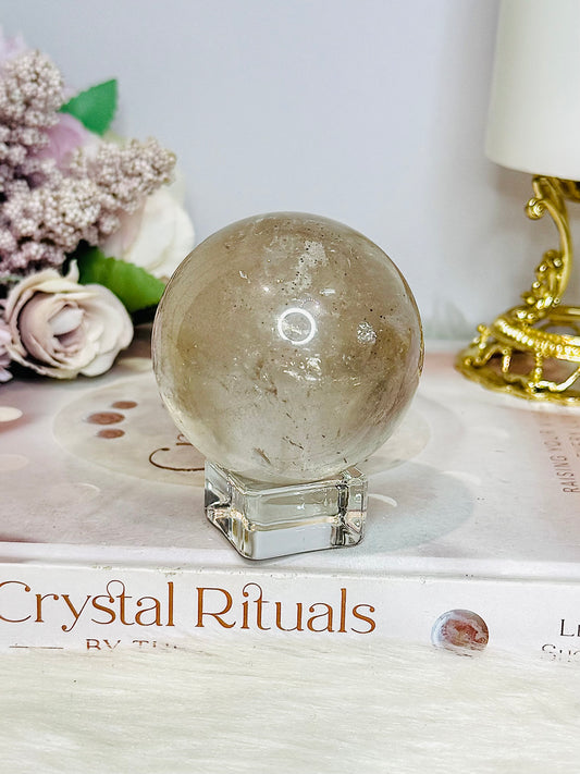 Large 602g Glass Chinese Dragon Sphere on Stand