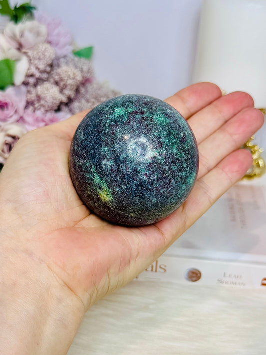 Ruby in Kyanite (UV Reactive) Sphere on Timber Stand 447g
