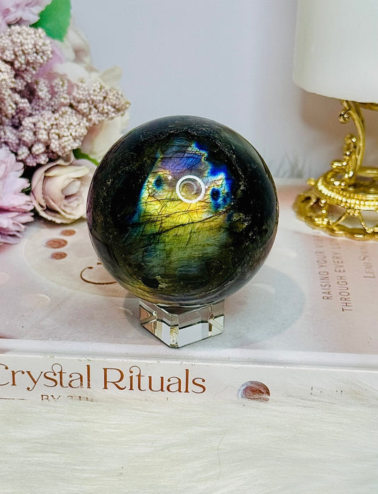 High Grade Garden Quartz Sphere with Rainbows 114g on Stand