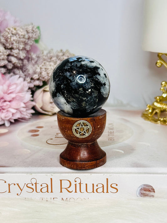 Rainbow Moonstone Sphere with Blue Flash On Stand 8cm
