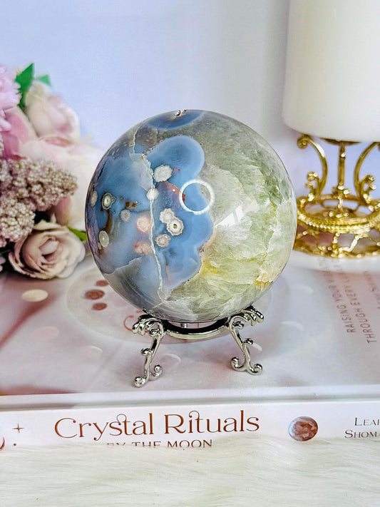 Rare & Incredible Large Green & Blue Flower Agate Sphere On Stand 671gramsVendor:Beachy Blues CrystalsRegular price $169.00 AUDRegular priceUnit price per-