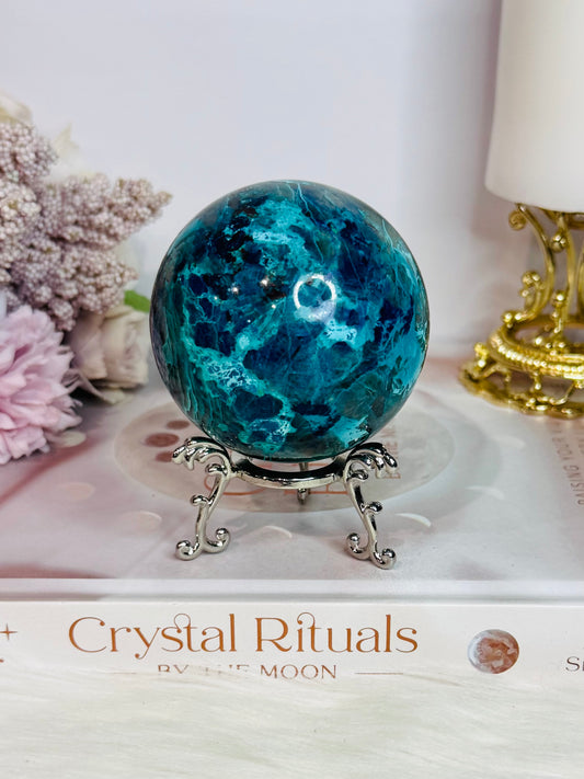 Absolutely Incredible High Grade Chrysocolla Sphere on Stand 339gramsVendor:Beachy Blues CrystalsRegular price $189.00 AUDRegular priceUnit price per-