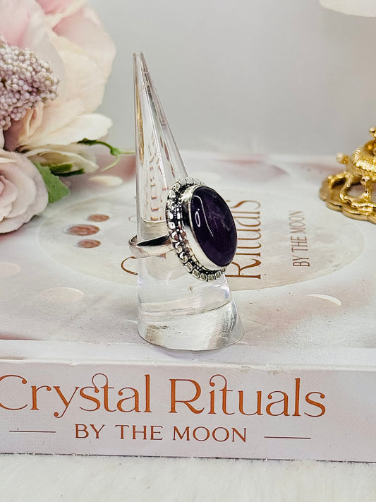 Stunning Amethyst Adjustable Ring In Gift Bag