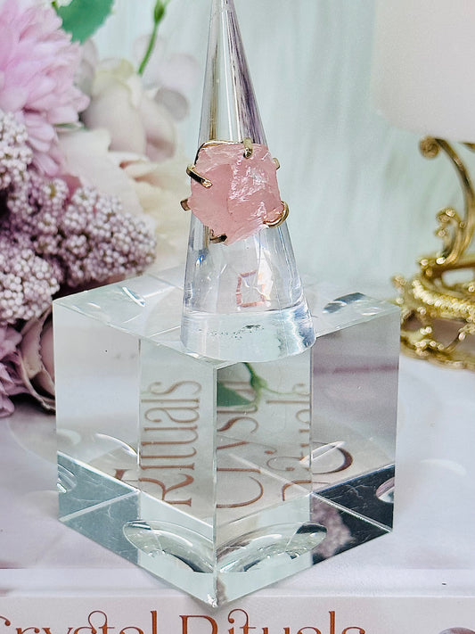 Natural Rose Quartz Gold Plated Adjustable Ring From Brazil ~ In Gift Bag